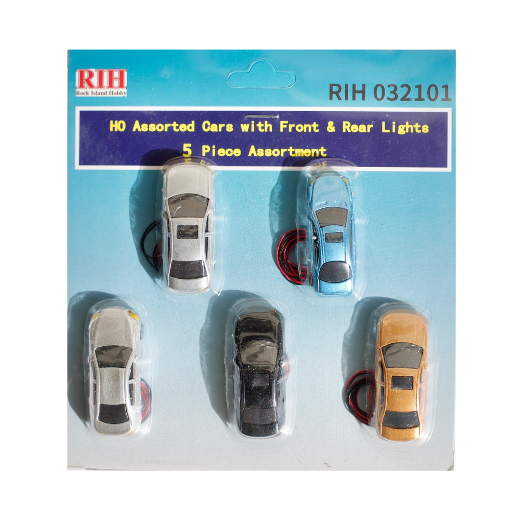 HO Scale Assorted Cars with Front & Rear Lights (5pcs)